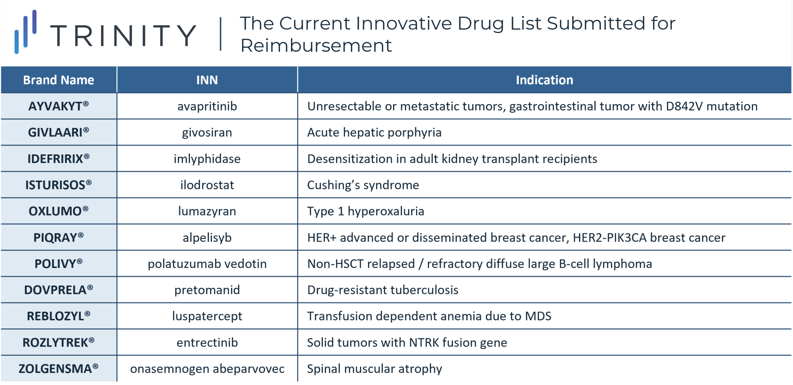 There are five criteria for “innovativeness” that need to be met for inclusion on the list, but these have not been clearly defined to date. The HTA would still apply to the candidates for inclusion in the Fund, incorporating clinical evaluation, evaluation of the magnitude of benefit, economic evaluation, and assessment of the budget impact.