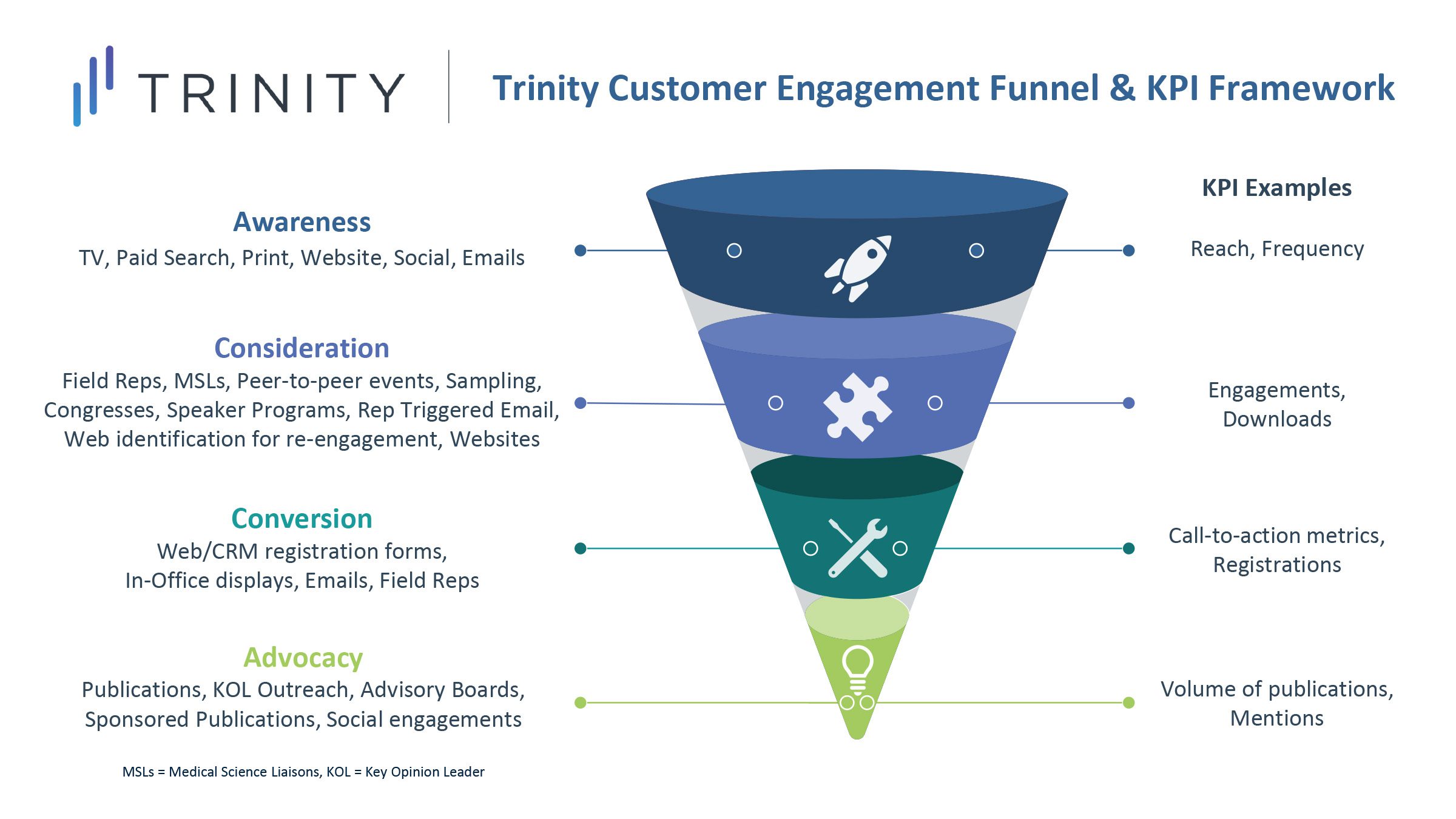 Trinity’s Customer Engagement team will be available at HLTH booth #4722 to answer any questions regarding the Funnel/KPI Framework and the Trinity Omnichannel Reporting Suite. The Trinity team at HLTH will also be offering a survey to attendees to learn their “Customer Engagement score.” Members of the media can request an interview by contacting Elizabeth Marshall: emarshall@trinitylifesciences.com.